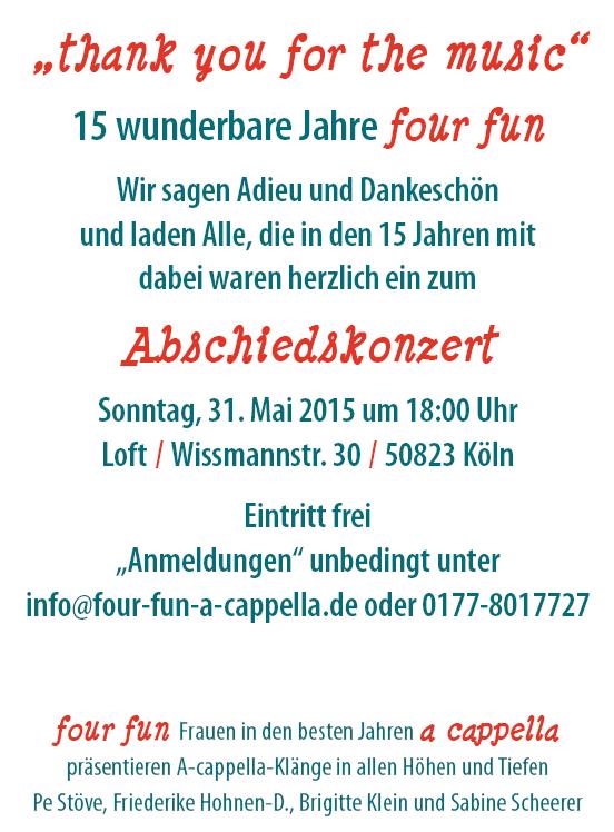- Lutherkirche, Köln: Auftritt im Rahmen eines Benefizkonzertes